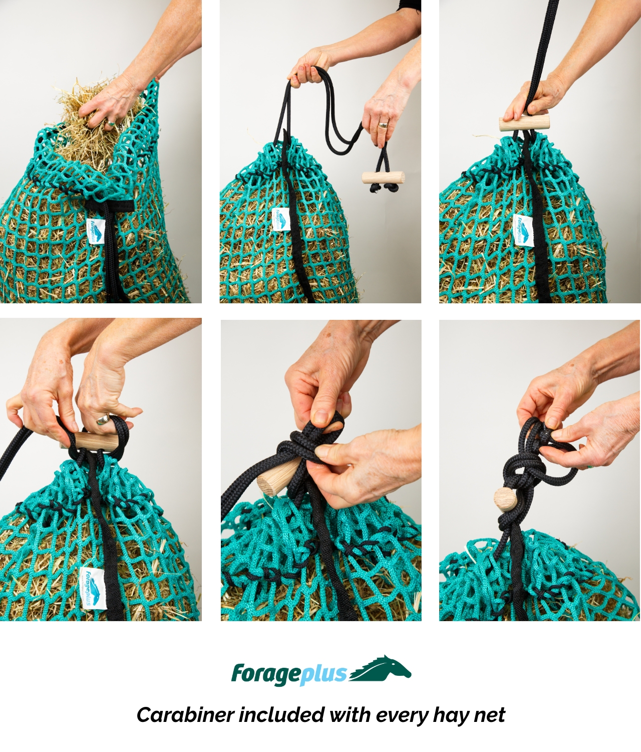 Finding a hay net that is safe, durable, and practical can be difficult. The Forageplus Slow Feeder Hay Net has been designed to meet all three needs: